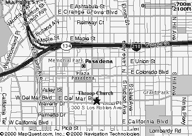 (From the 134 or 210 East, exit to "Del Mar" and turn left--east--off the ramp; head east to Los Robles. From the 210 West, exit Lake Ave. and head south to Del Mar. Turn right--west--on Del Mar; proceed to Los Robles.)